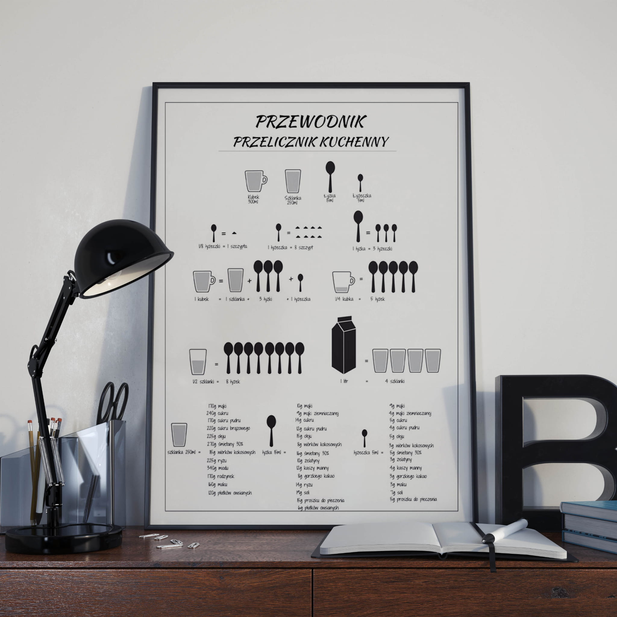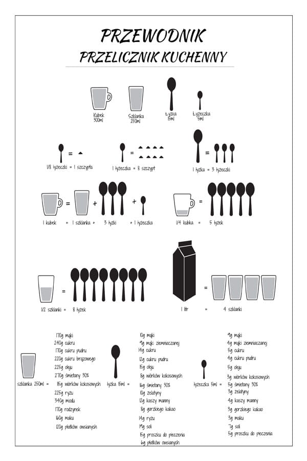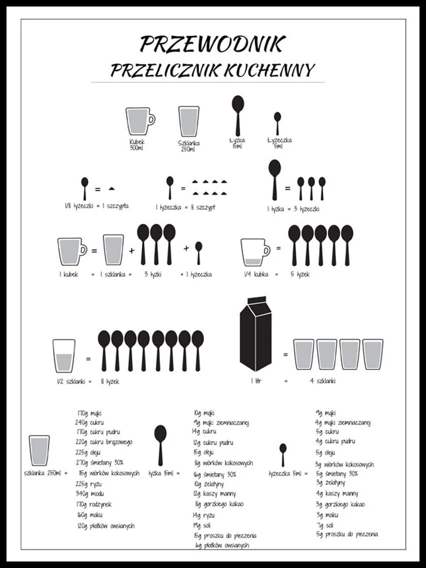 Popularny plakat na ścianę – Przewodnik - przelicznik kuchenny- nada charakter Twojemu wnętrzu.