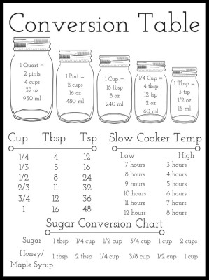 Plakat, Przewodnik - przelicznik miar kuchennych