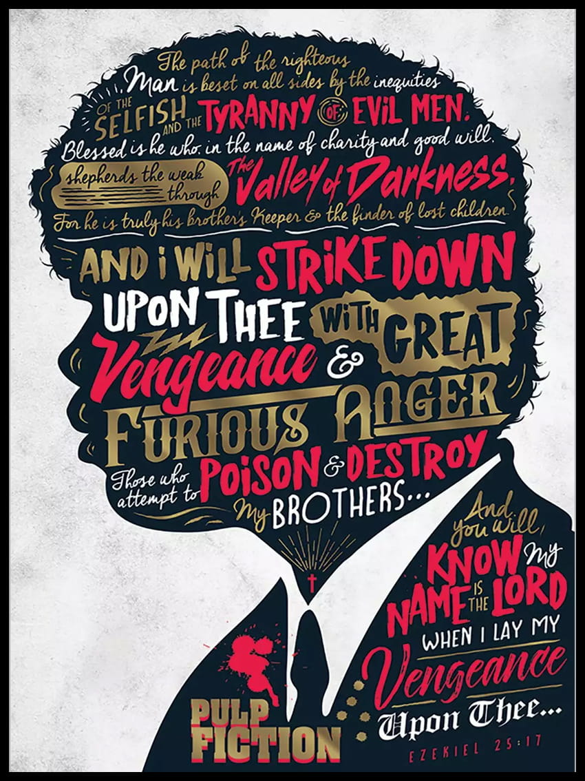 Popularny plakat na ścianę – Pulp Fiction Jules Ezekiel 25:17- nada charakter Twojemu wnętrzu.