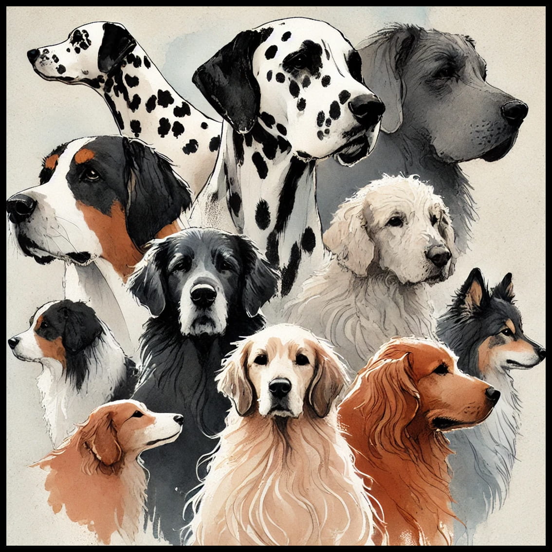 Zawiera ilustracje różnych ras, od majestatycznych owczarków po urocze mopsy, prezentując je w stylowy i przystępny sposób.