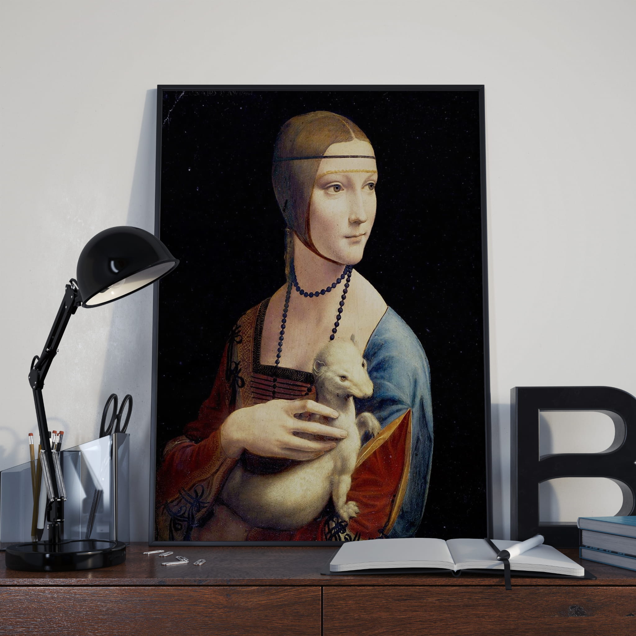 Nowoczesny plakat na ścianę – Reprodukcja obrazu Leonarda da Vinci – Dama z gronostajem- nada charakter Twojemu wnętrzu.