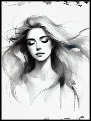 Plakat, Rozmarzona kobieta w czarno białych barwach