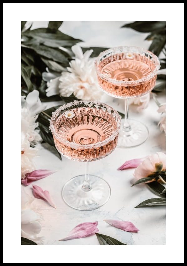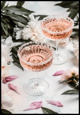 Plakat, Różowe kieliszki z winem