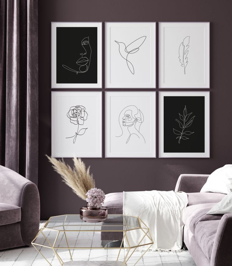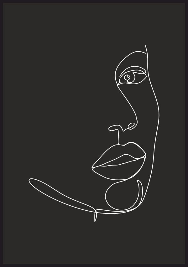 Czarno-biały minimalistyczny plakat line art przedstawiający twarz kobiety malowaną za pomocą linii.
