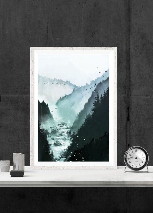 Nowoczesny plakat na ścianę – Rzeka w górach - nada charakter Twojemu wnętrzu.