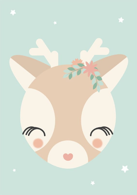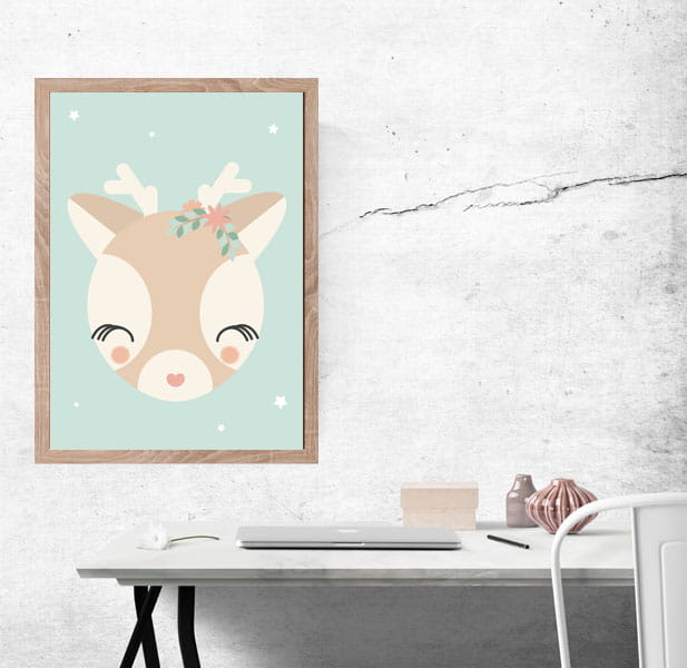 Nowoczesny plakat na ścianę –Sarenka miętowe tło