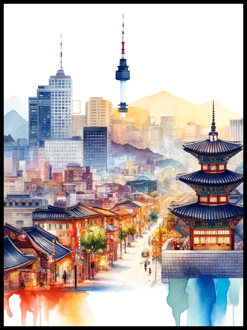 Zapraszamy do odkrycia pulsującej energii i niepowtarzalnego ducha Seulu, uchwyconych na zachwycającym plakacie autorskim od 4rooms, który stanie się oknem na nieograniczone możliwości i dynamiczną atmosferę tej wschodzącej metropolii.