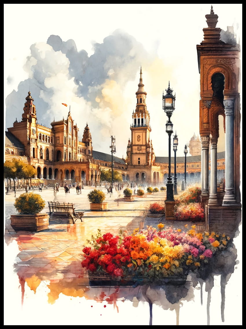 Zapraszamy do zanurzenia się w bogatej kulturze i historycznej elegancji Sewilli dzięki naszemu nowemu plakatowi z kolekcji plakatów autorskich 4rooms. Ten zachwycający plakat przeniesie Cię prosto do serca Andaluzji, gdzie zabytkowe pałace mieszają się z żywiołowym duchem flamenco.