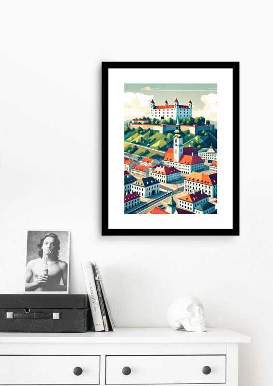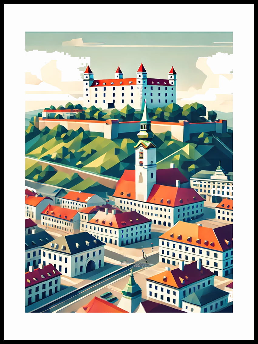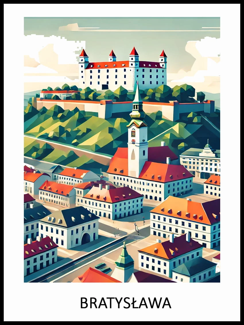 Odkryj urok słowackiej stolicy dzięki naszemu wyjątkowemu plakatowi przedstawiającemu Bratysławę. Subtelne detale, starannie dobrane kolory i artystyczna perspektywa ukazują miasto pełne historii, kultury i nowoczesnego charakteru.