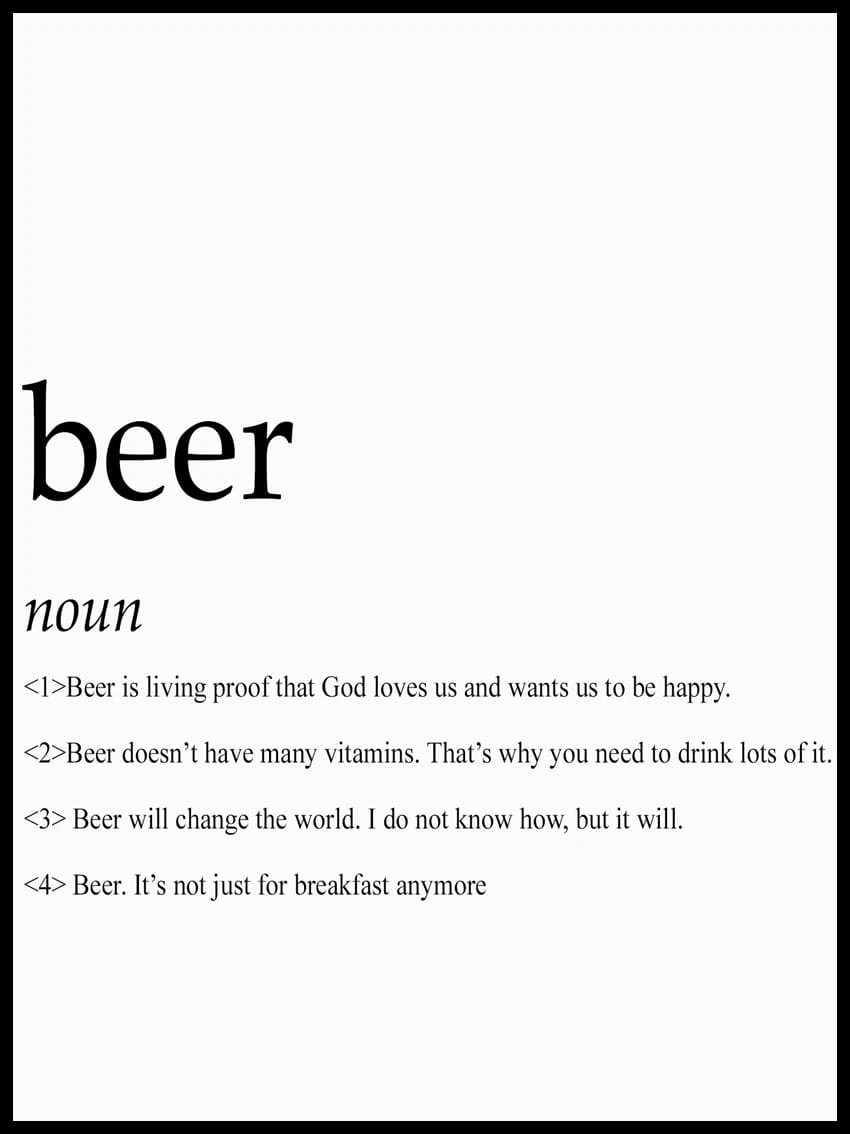 Plakat z napisem będzie pasował do każdego wnętrza. Jest tu kilka zabawnych powiedzonek ze słowem Beer.