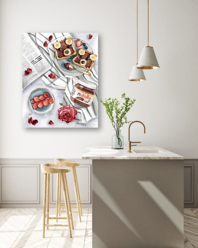 Wyjątkowy wydruk Śniadanie do łóżka - Svetrinka.art wniesie do pomieszczenia powiew abstrakcji i będzie dobrą alternatywą dla popularnych motywów. Kolekcja prac naszych artystów to wybór idealny dla każdego wielbiciela unikalnej sztuki i oryginalnych dekoracji ściennych.
