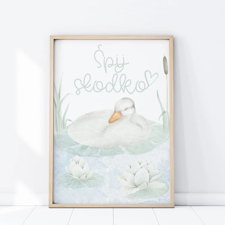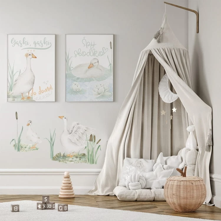 Drukowany plakat z gąską.