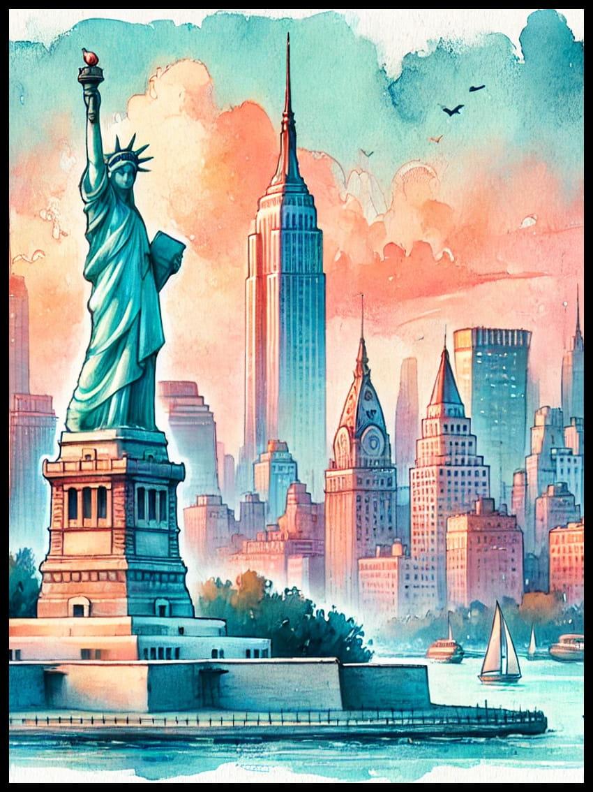 Ta ikona wolności i demokracji, wznosząca się wysoko nad wodami Nowego Jorku, została uchwycona w wyjątkowej kompozycji, która oddaje jej niezachwianą siłę i ponadczasowy urok.