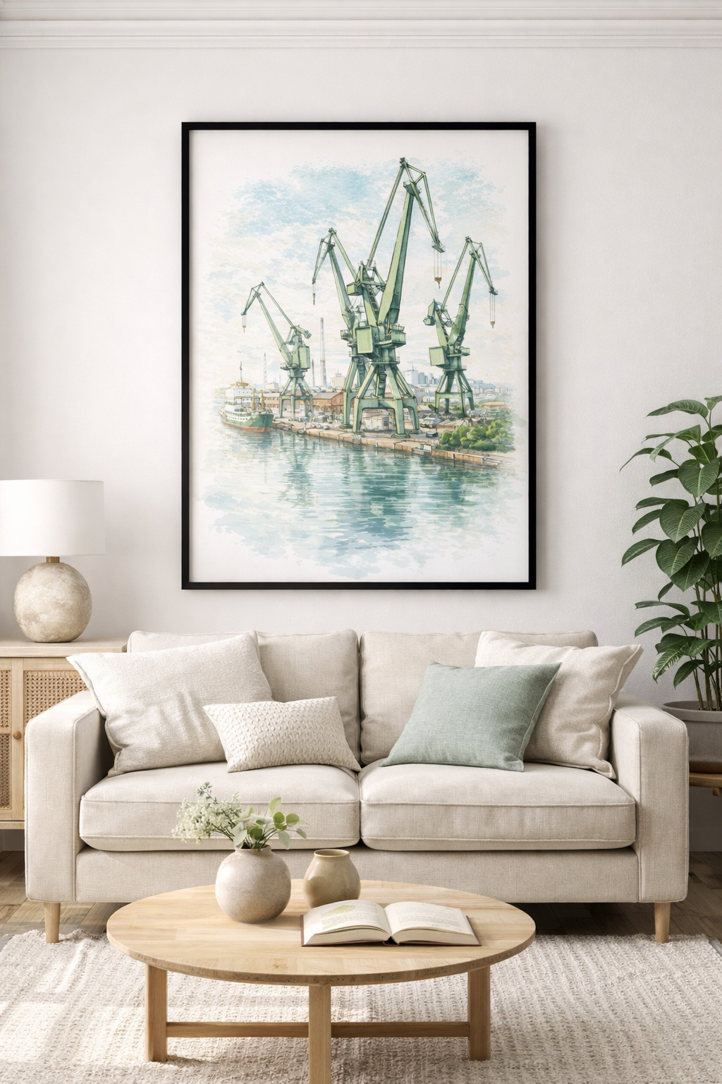 Gdańsk, miasto o bogatej historii i unikalnej architekturze, jest także domem dla imponujących konstrukcji, które odzwierciedlają jego postindustrialny charakter. Na tym wyjątkowym plakacie uchwycono esencję Gdańska przez pryzmat jego charakterystycznych dźwigów portowych, które rysują się na tle miasta, tworząc unikalny krajobraz łączący tradycję z nowoczesnością.