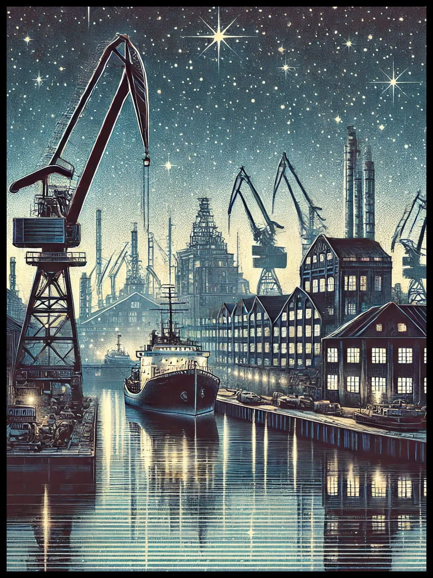 Plakat, Stocznia w Gdańsku - dźwigi w gwiazdach