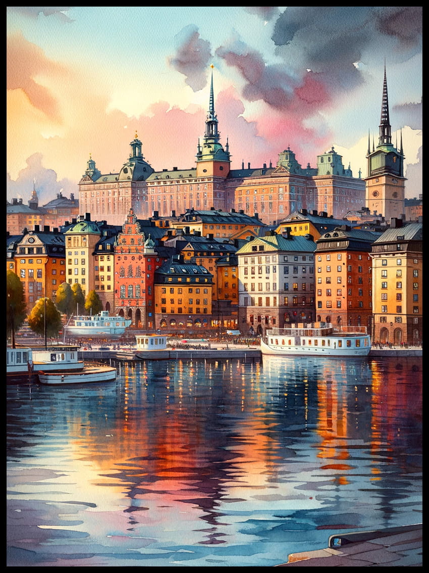 Zapraszamy do odkrycia urzekającego piękna Sztokholmu, uchwyconego w delikatnych niuansach akwareli, które składają się na wyjątkowy plakat dostępny w naszym sklepie 4rooms.