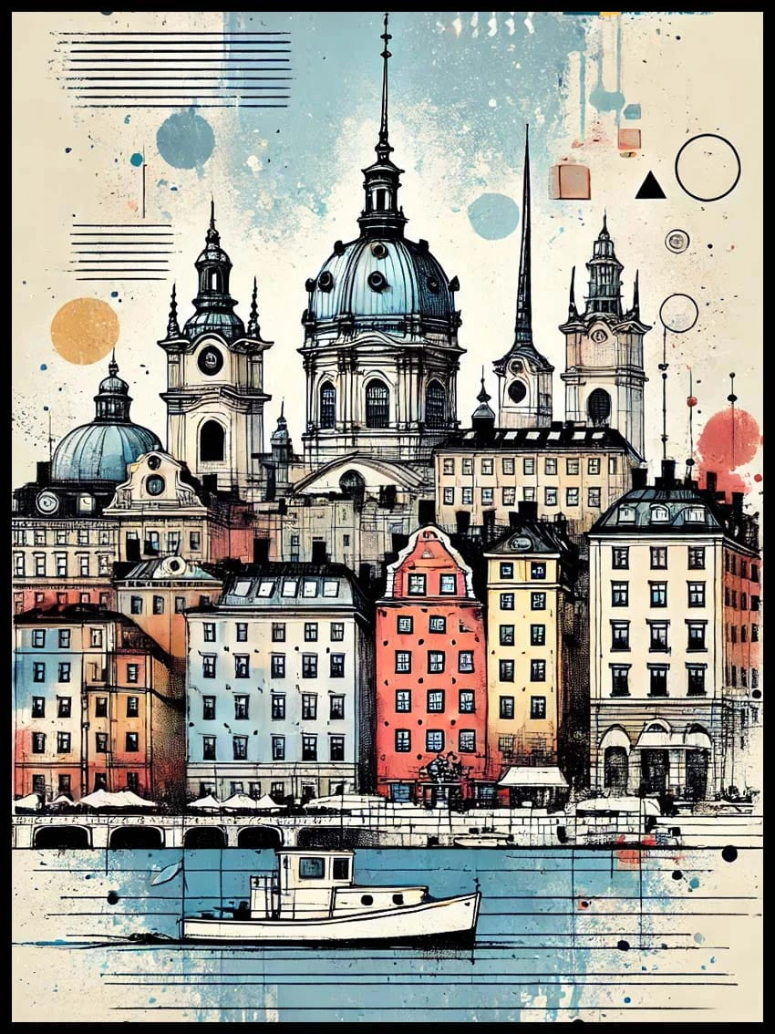 Zapraszamy do odkrycia urzekającego piękna Sztokholmu, uchwyconego w delikatnych niuansach akwareli, które składają się na wyjątkowy plakat dostępny w naszym sklepie 4rooms.