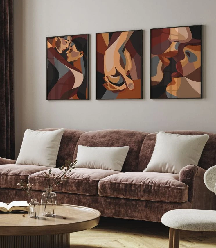 Niezwykle interesujący abstrakcyjny plakat, który przedstawia parę - mężczyznę i kobietę stojących w miłosnym uścisku