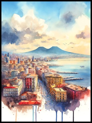 Plakat, Włochy Neapol - akwarela