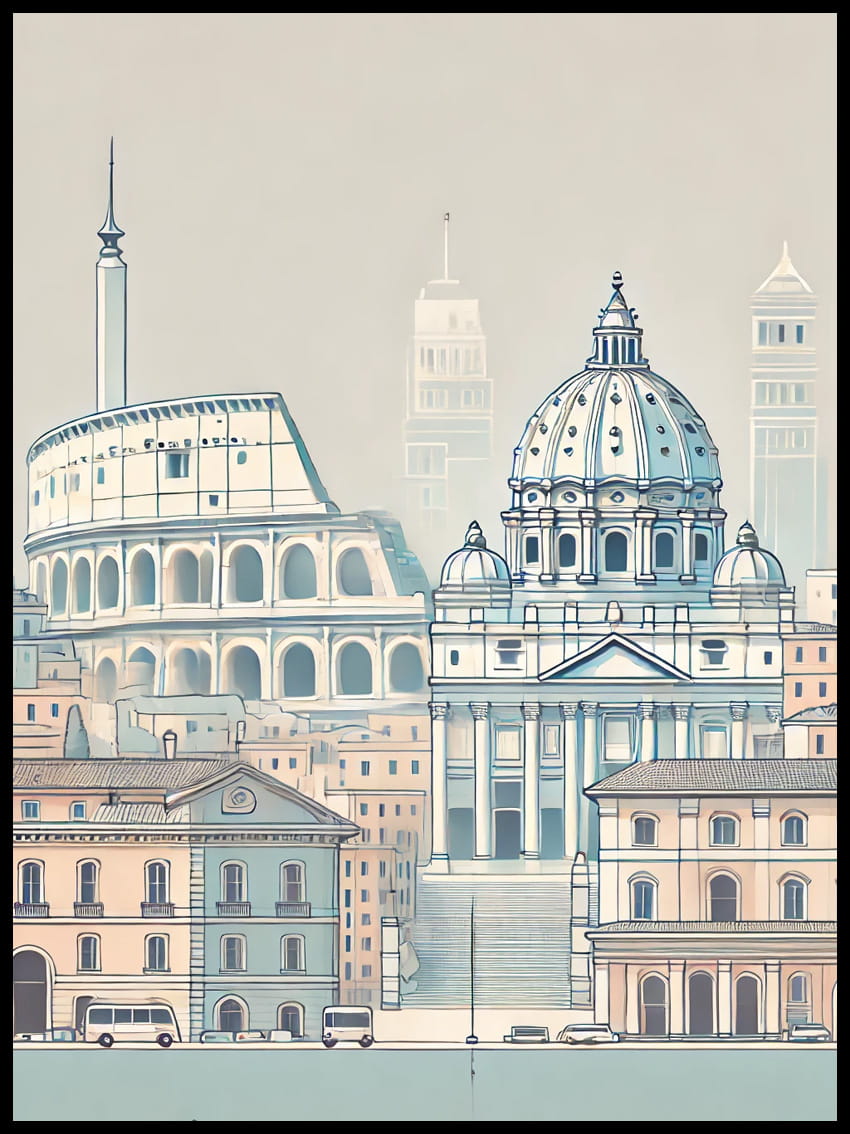 Idealny do każdego wnętrza, plakat Rzymu doda Twojemu domowi niepowtarzalnego klimatu i elegancji. Wykonany z wysokiej jakości materiałów, gwarantuje długowieczność i piękne kolory, które przez lata będą cieszyć Twoje oczy.