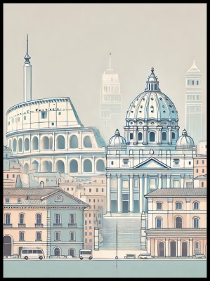 Przenieś się do serca wiecznego miasta z naszym wyjątkowym plakatem przedstawiającym Rzym. Ten pięknie wykonany plakat uchwycił urok i majestat stolicy Włoch, ukazując jej najbardziej znane zabytki.