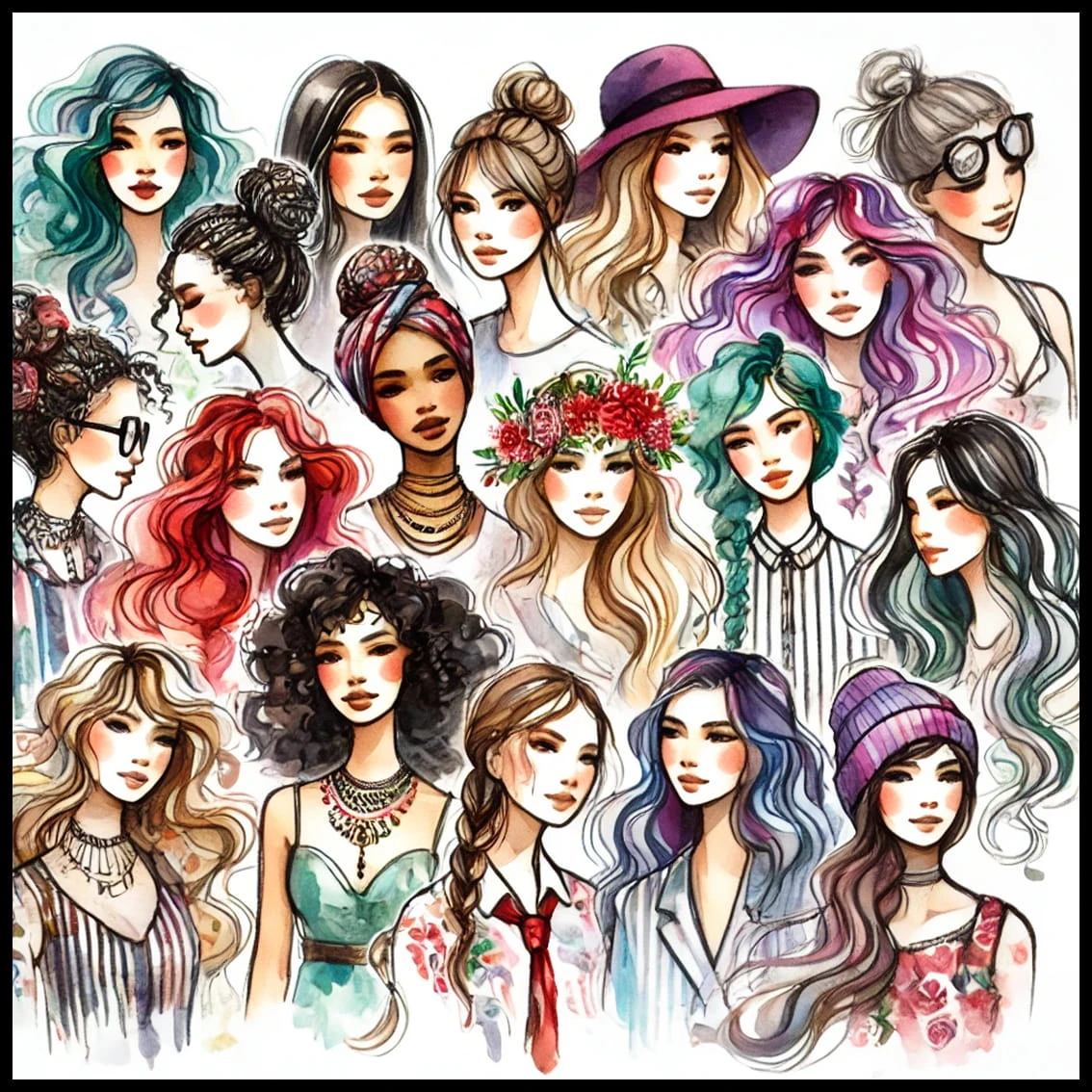 Nowoczesny plakat na ścianę z grafiką autorską, które przedstawia kobiety.