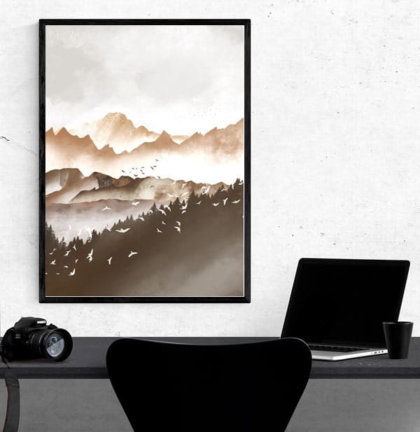 Nowoczesny plakat na ścianę – Wzgórza leśne ptaki - nada charakter Twojemu wnętrzu.