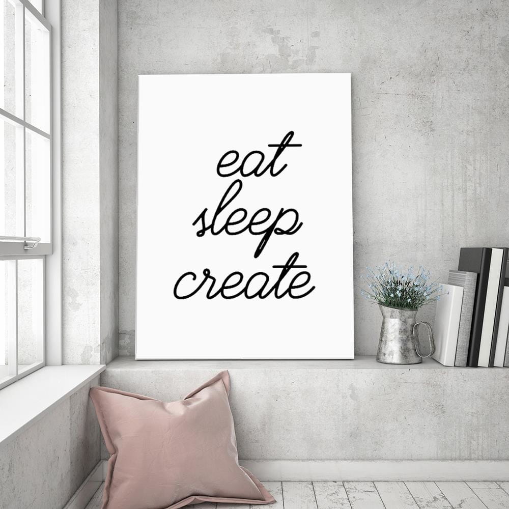 Nowoczesny plakat na ścianę – Jedz, śpij, twórz - nada charakter Twojemu wnętrzu.