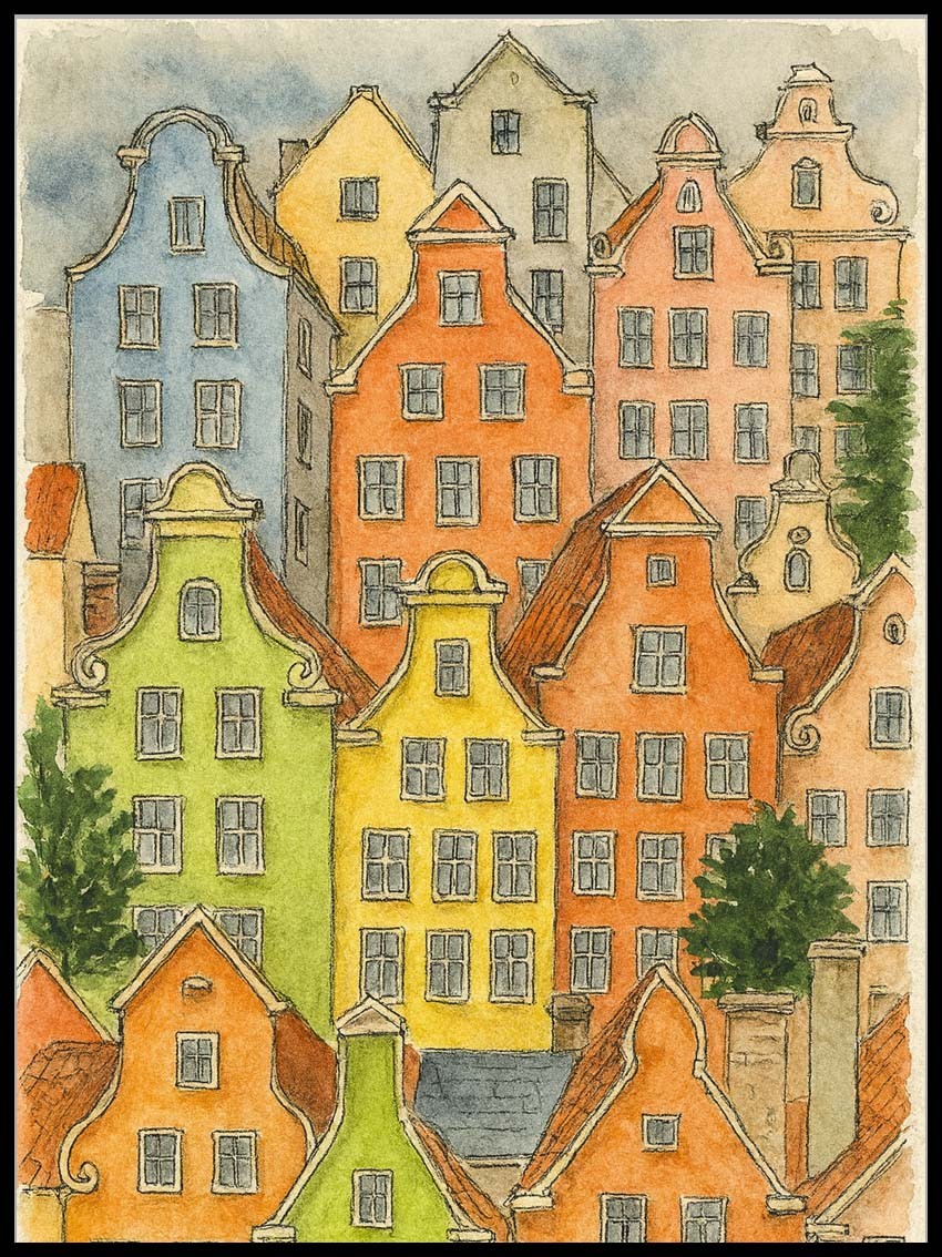 Plakat "Gdańsk widok na kamienice" – artystyczny widok na miasto z duszą