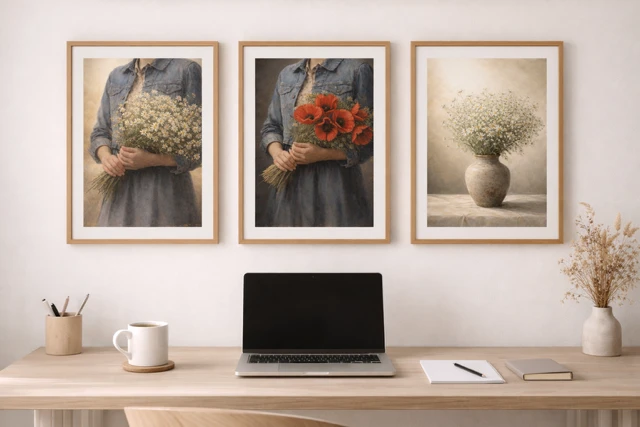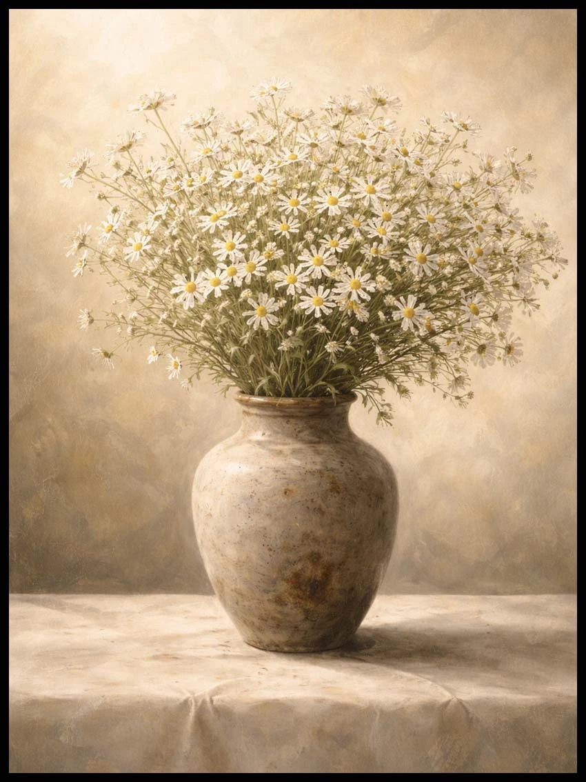 Wprowadź do swojego domu harmonię i naturalne piękno dzięki wyjątkowemu plakatowi z motywem delikatnych kwiatów w ceramicznym wazonie.