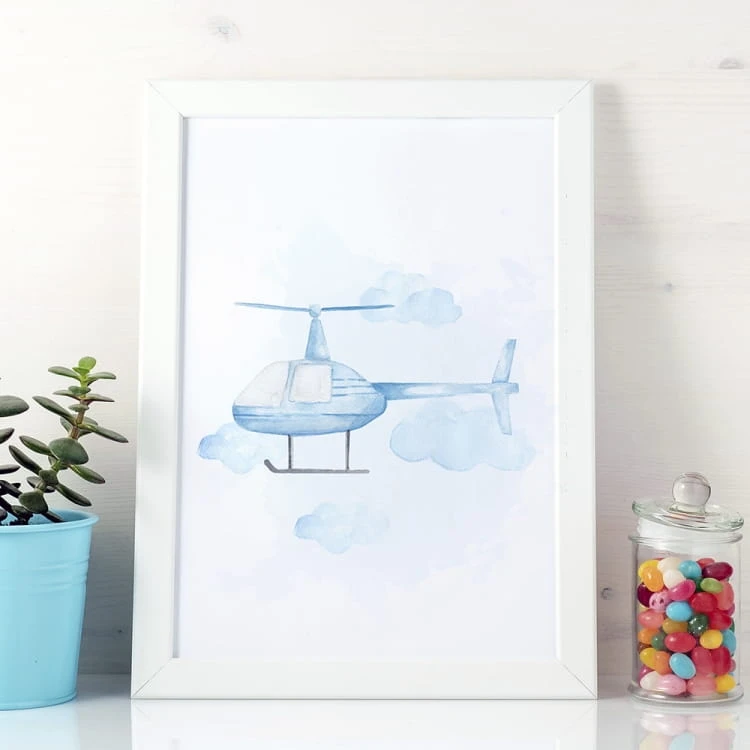 Plakat Helikopter idealnie ozdobi wnętrze pokoju dziecięcego.