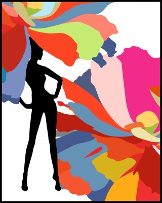 Plakat, Kobieta kolorowa na białym tle.