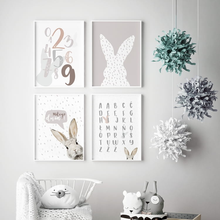 Śliczny plakat z króliczkiem nada wyjątkowy charakter Twojemu wnętrzu.