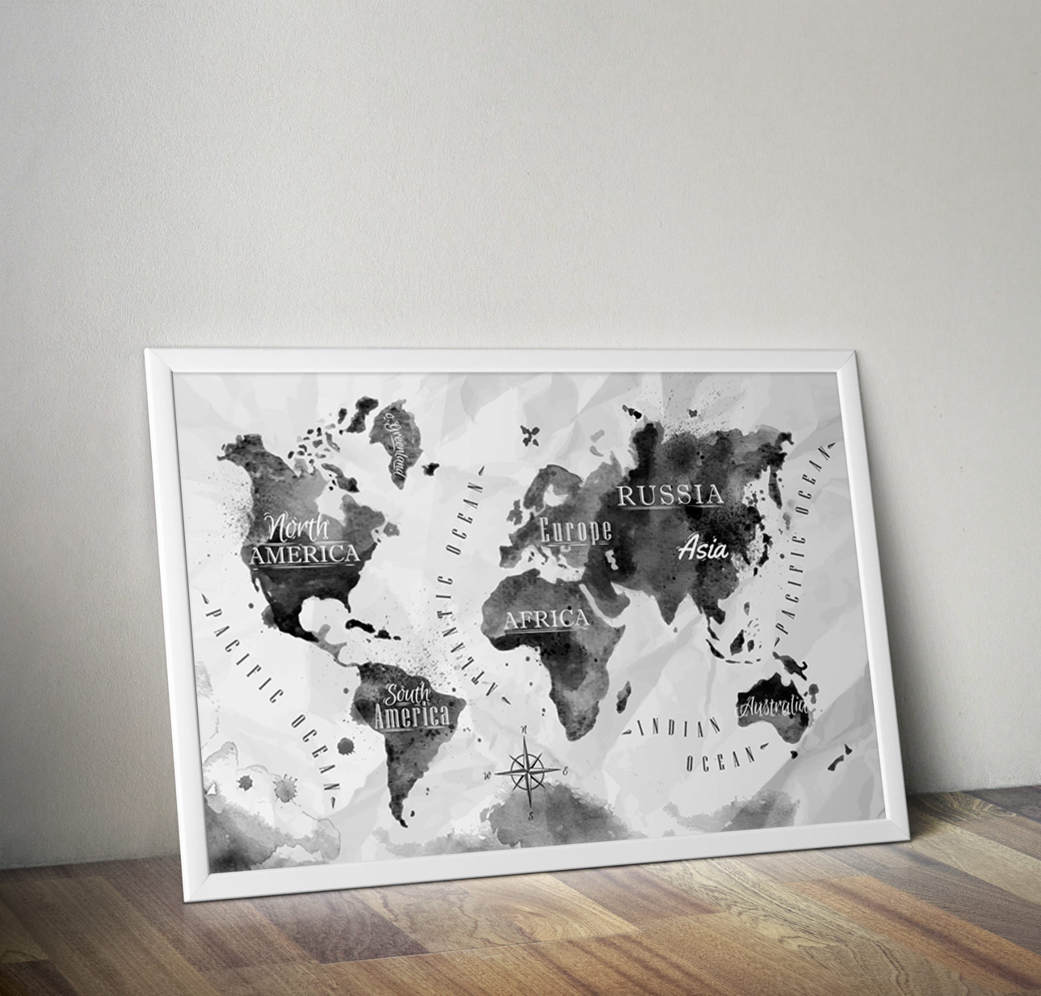 Mapa świata pełni funkcję ozdobną oraz edukacyjną.