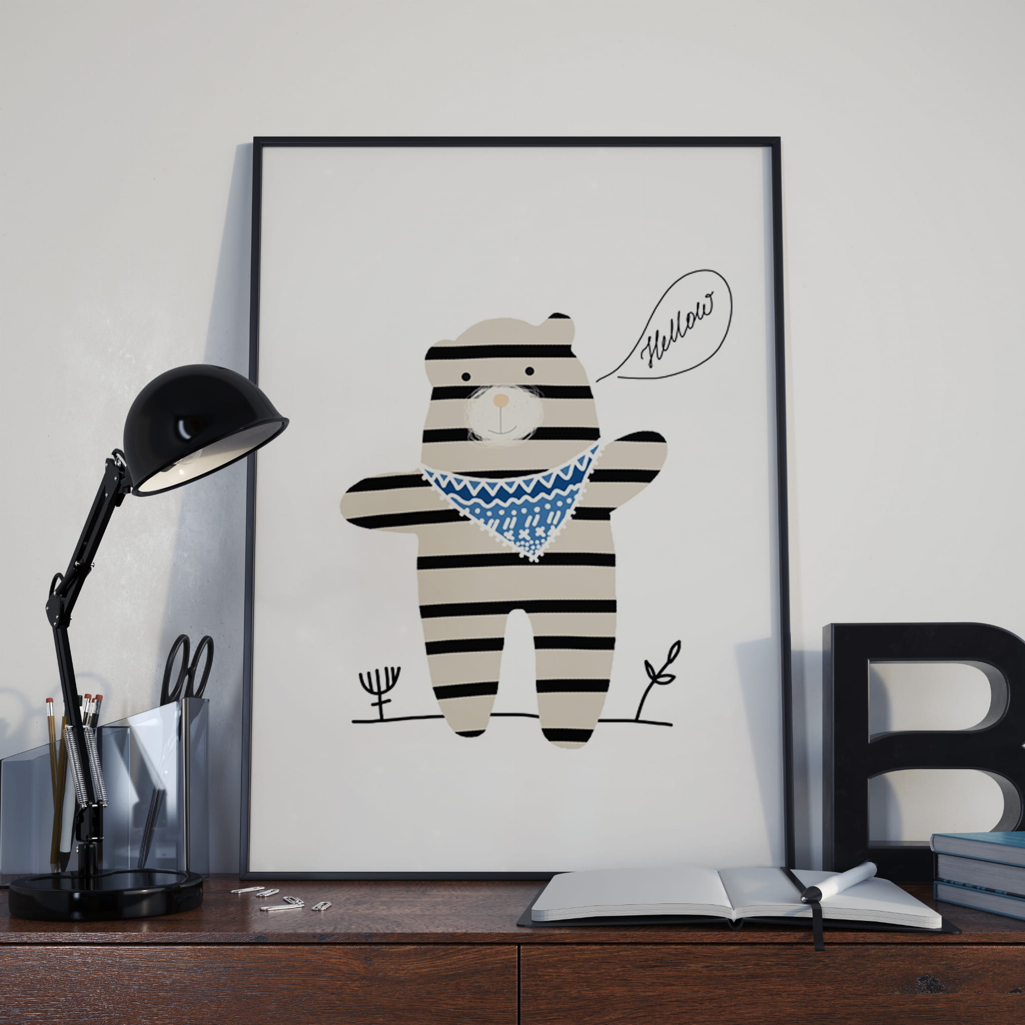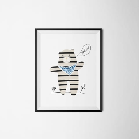 Plakat autorski ze ślicznym misiem.