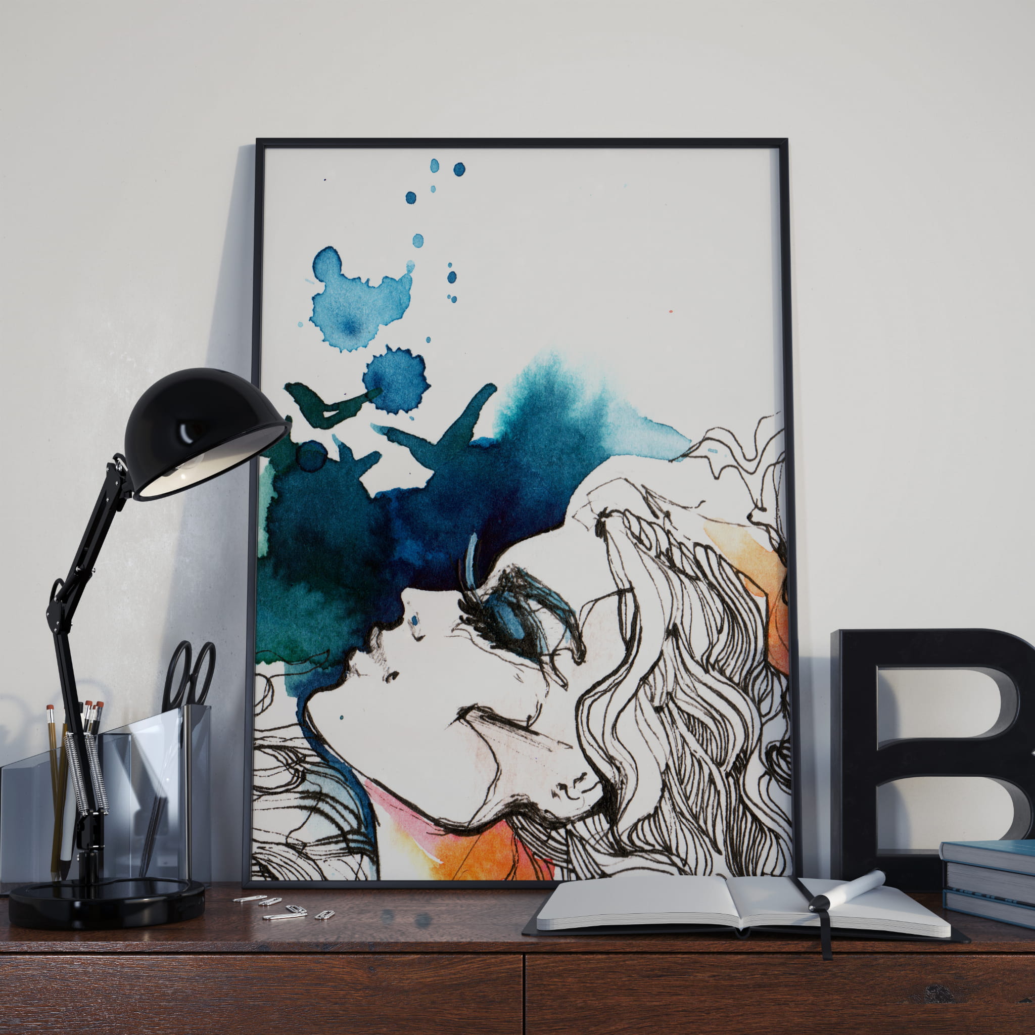 Oryginalny i subtelny plakat. Granatowo-biała kolorystyka powoduje, że plakat będzie idealnie pasował do wielu wnętrz.