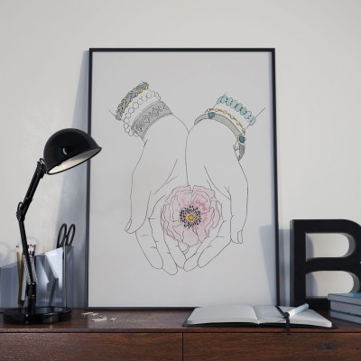 Plakat dłonie z kwiatem można fajnie zestawić z innym plakatem 4rooms.com.pl