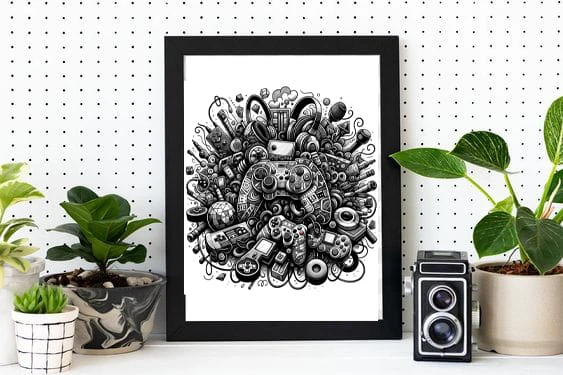 Zanurz się w detale, które pulsują energią gier video: od wyrazistych, neonowych kolorów, przez złożone wzory inspirowane cyfrowym światem, aż po ikoniczne symbole, które każdy gracz rozpozna. "Gaming Pad" to więcej niż plakat; to hołd dla kultury gamingowej, jej dynamiki i nieskończonych możliwości.