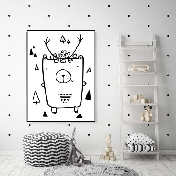 Plakat rysowany kreską Misiorożec w stylu Scandi uzupełnia pozostałe produkty z kolekcji Skandynawskiej. Znajdziesz zarówno króliki w różnych kolorach, jak i napisy czy proste grafiki skandynawskie. Prostota to podstawa tego stylu.