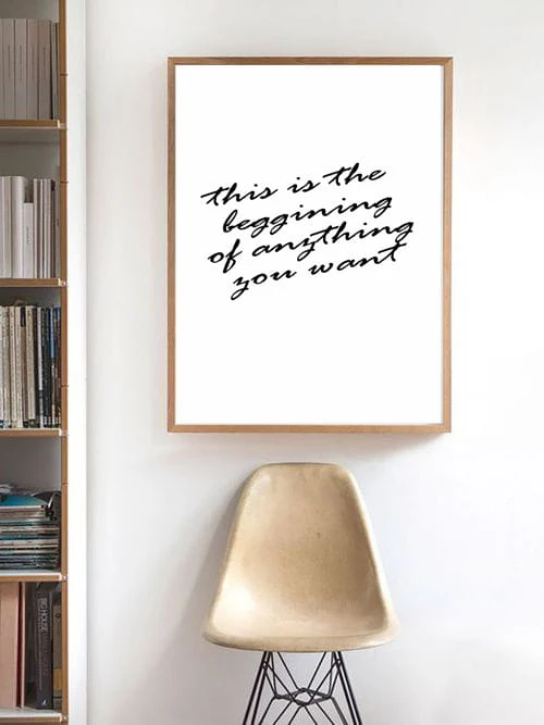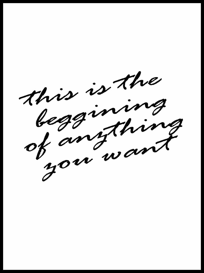 Plakat z napisem This is the beggining of anything you want pozwoli zapełnić puste miejsce na ścianie salonu czy sypialni.