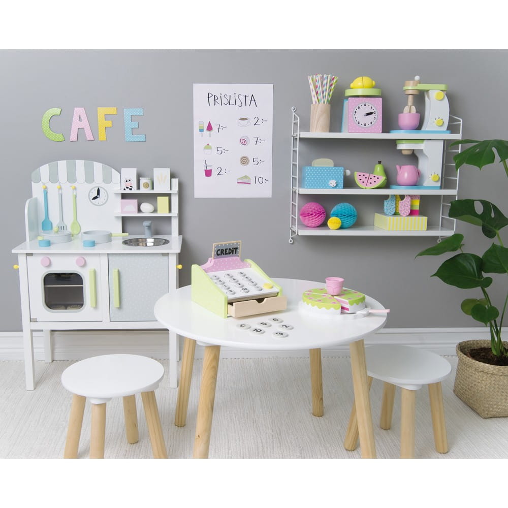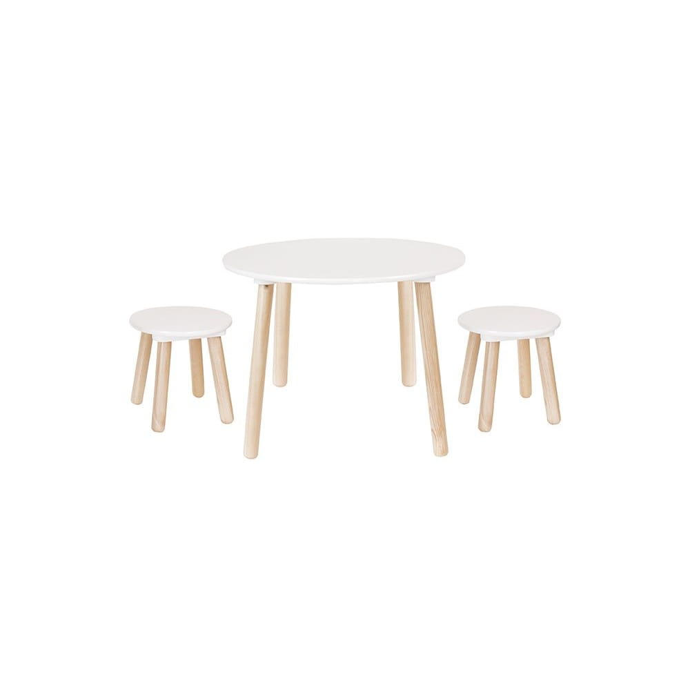 Wymarzony zestaw do dziecięcego pokoju, uroczy drewniany, okrągły biały stół z dwoma krzesełkami. Ten cudeowny zestaw będzie się pięknie prezentował zarówno w pokoju dziewczynki, jak i chłopca. Dzięki okrągłym nóżkom, stolika i krzesełek w kolorze naturalnego drewna, ten zestaw mebelków wydaje się być niezwykle lekki, i pasuje do niemal każdego wnętrza. Wykonany niezwykle solidnie, z dbałością o detale spełni oczekiwania nawet najbardziej wymagających.