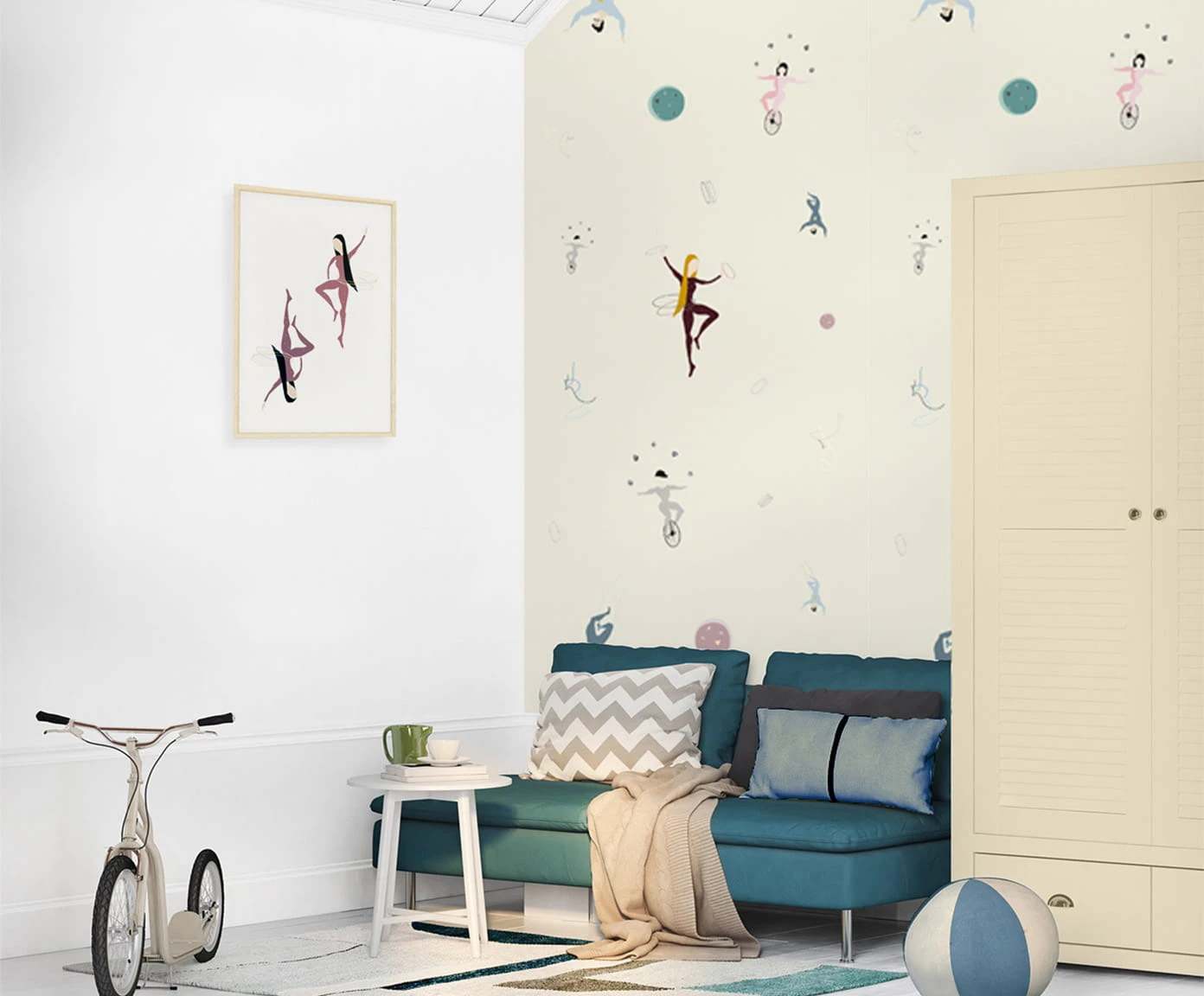Tapeta dla dzieci Acrobats to wyjątkowy wzór rozpoczynający całą kolekcję Champions.