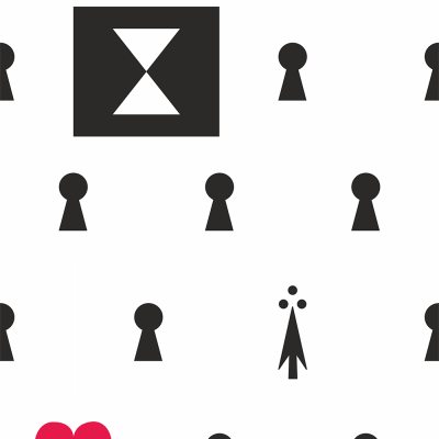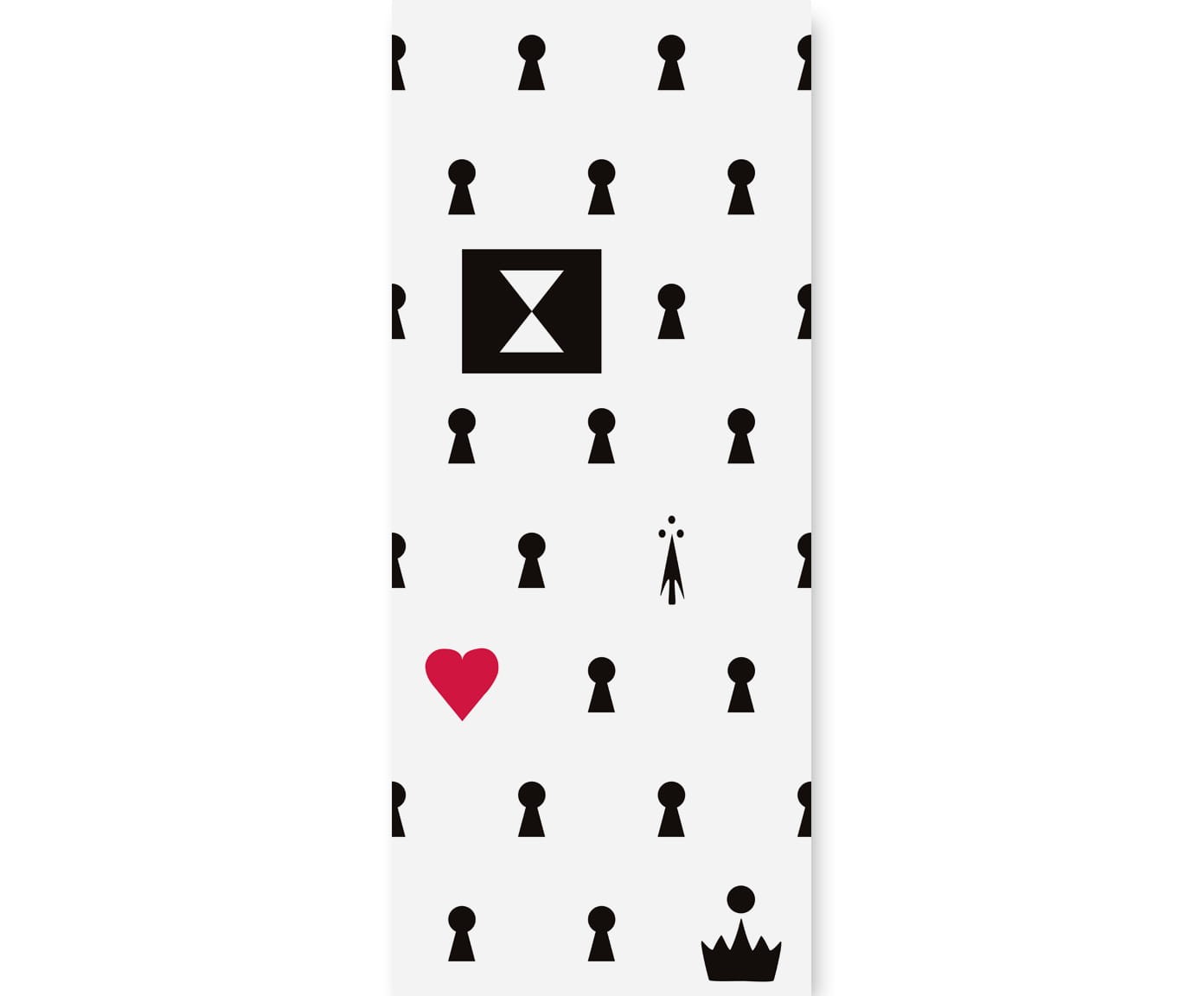 Elementy wzoru zawierają kształt czarnych kluczy przeplatane czterema kolorami kart.