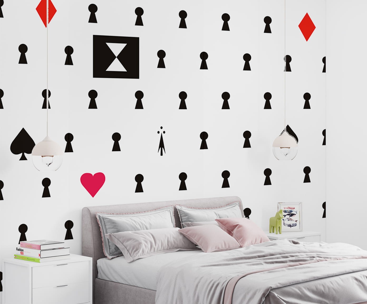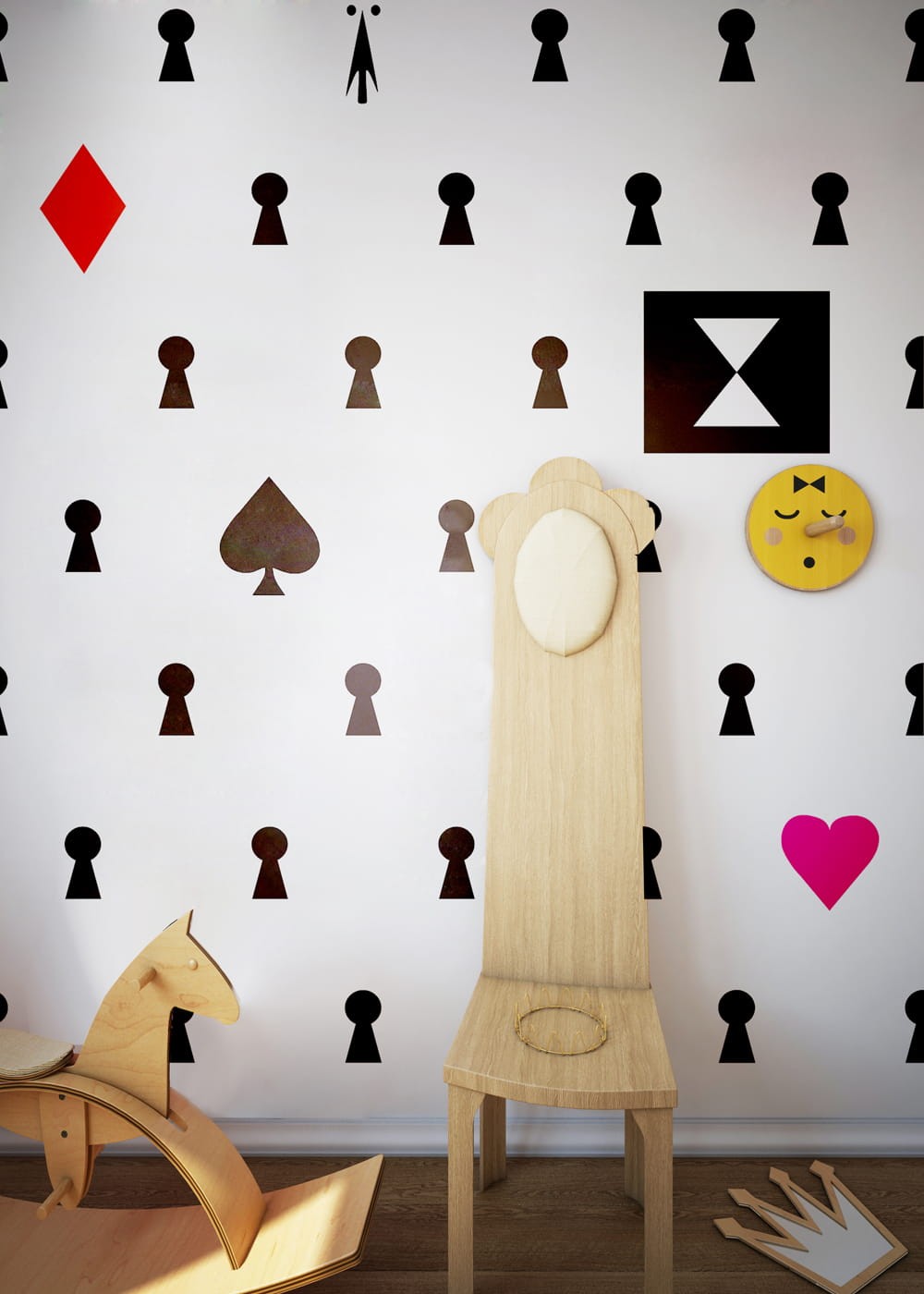 Tapeta dziecięca Alice I to gra prostych form o serce królowej.
