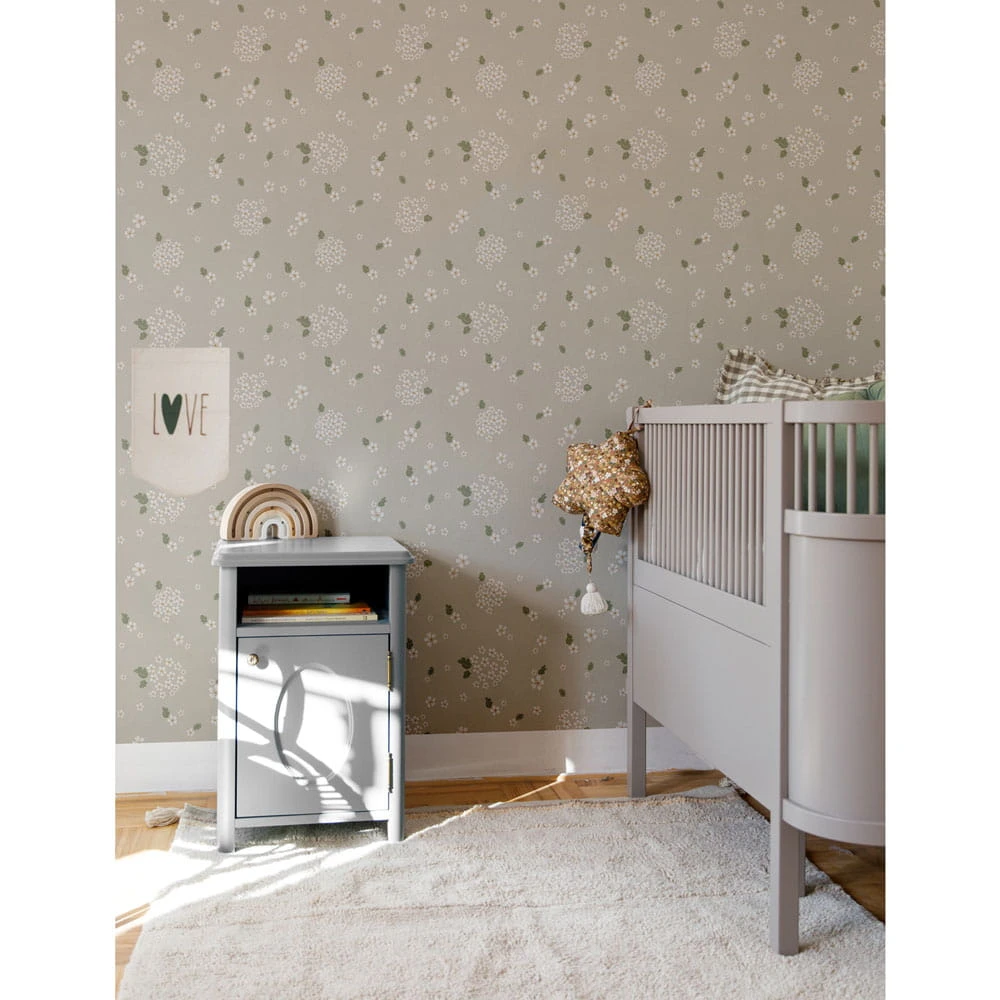 Świetnie sprawdzi się jako pierwsza tapeta, dla dopiero co narodzonego maluszka. Przy białym łożeczku – ideał!