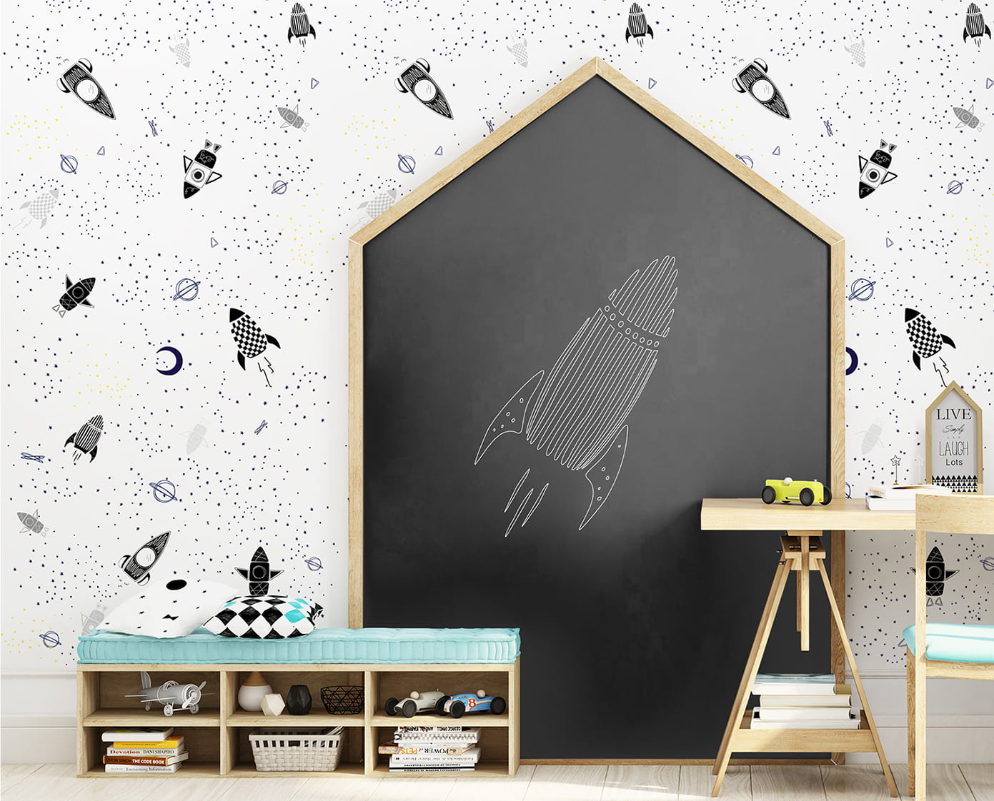 Tapeta dla dzieci Space to wyjątkowa tapeta w rakiety.
