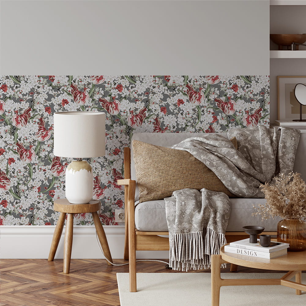 Istotą tapety są niewątpliwie kwiaty – białe i czerwone. Czasem nie trzeba wyszukanych wzorów, wystarczą klasyczne rozwiązania.