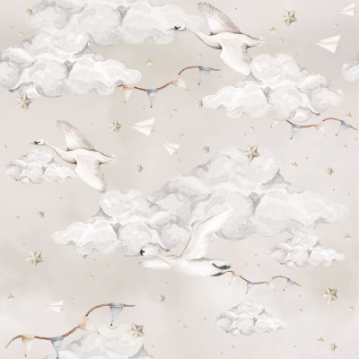 Tapeta, Łabędzie na Beżowym Niebie
