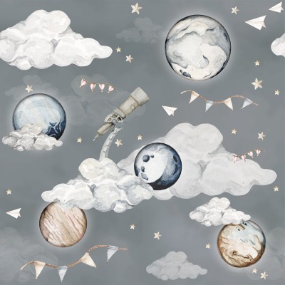 Mamy zestaw naklejki Niebo Galileusza, a teraz tapetę z planetami. Oczywiście wszystkich planet nie mogliśmy zawrzeć w tym wzorze, jednak wystarczy ich na odkrywanie i nazywanie ich chociażby imionami z naszych rodzin: planeta babci, dziadka, Mikołaja czy… Galileusza.