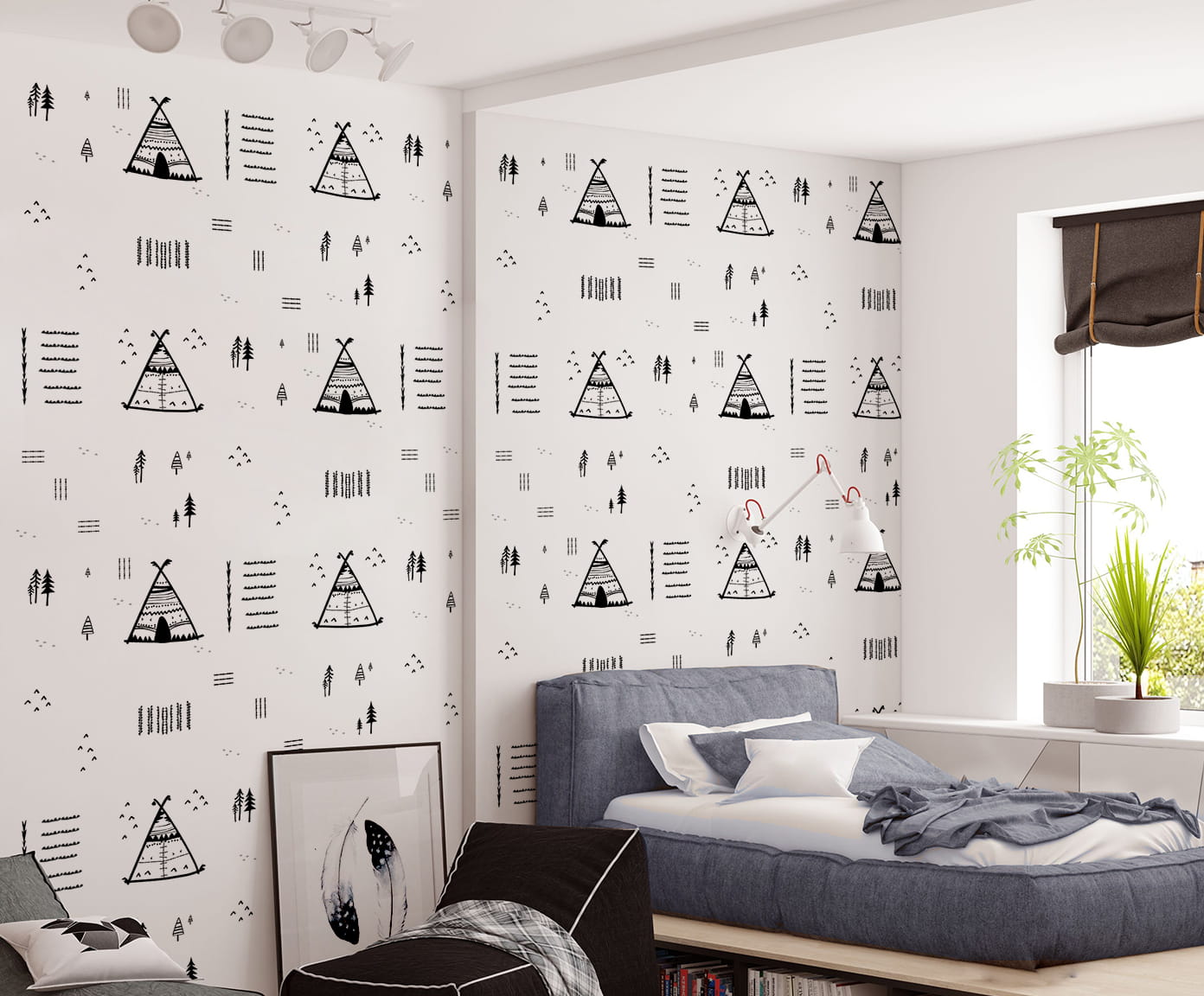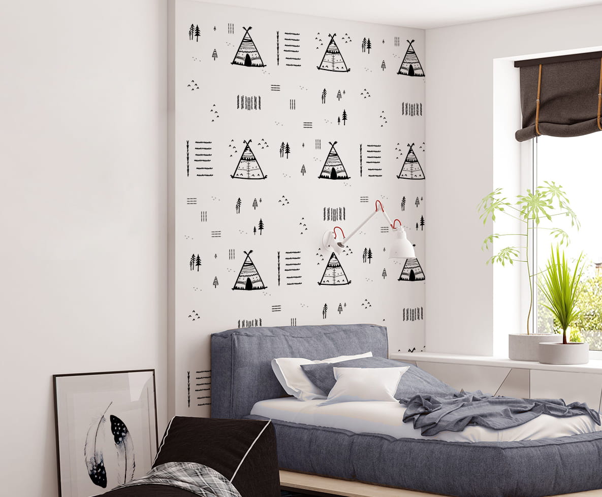 Tapeta dla dzieci Teepee Tent to nowoczesna tapeta w stylu skandynawskim reprezentująca kolekcję Easy Way.